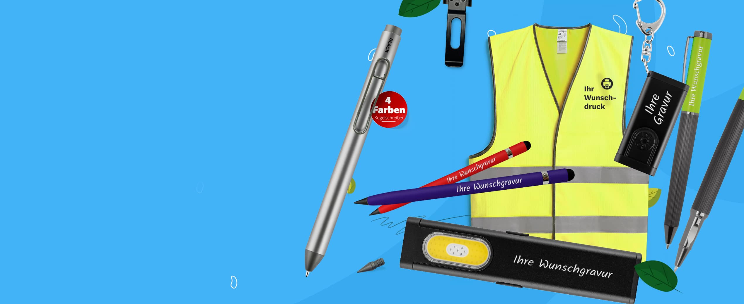 Egal ob Kugelschreiber, Feuerzeuge, Flaschenöffner oder Zollstöcke, wir sorgen dafür, dass Sie Ihre Artikel schnell, unkompliziert und bequem personalisieren können. Unsere Werbeartikel sind mehr als Geschenke – sie schaffen Erinnerungen, die bleiben, für Kunden, Kollegen oder Freunde.
