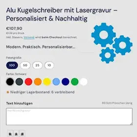 Wähle hochwertige Kugelschreiber und personalisiere sie mit deinem Logo oder Wunschtext
