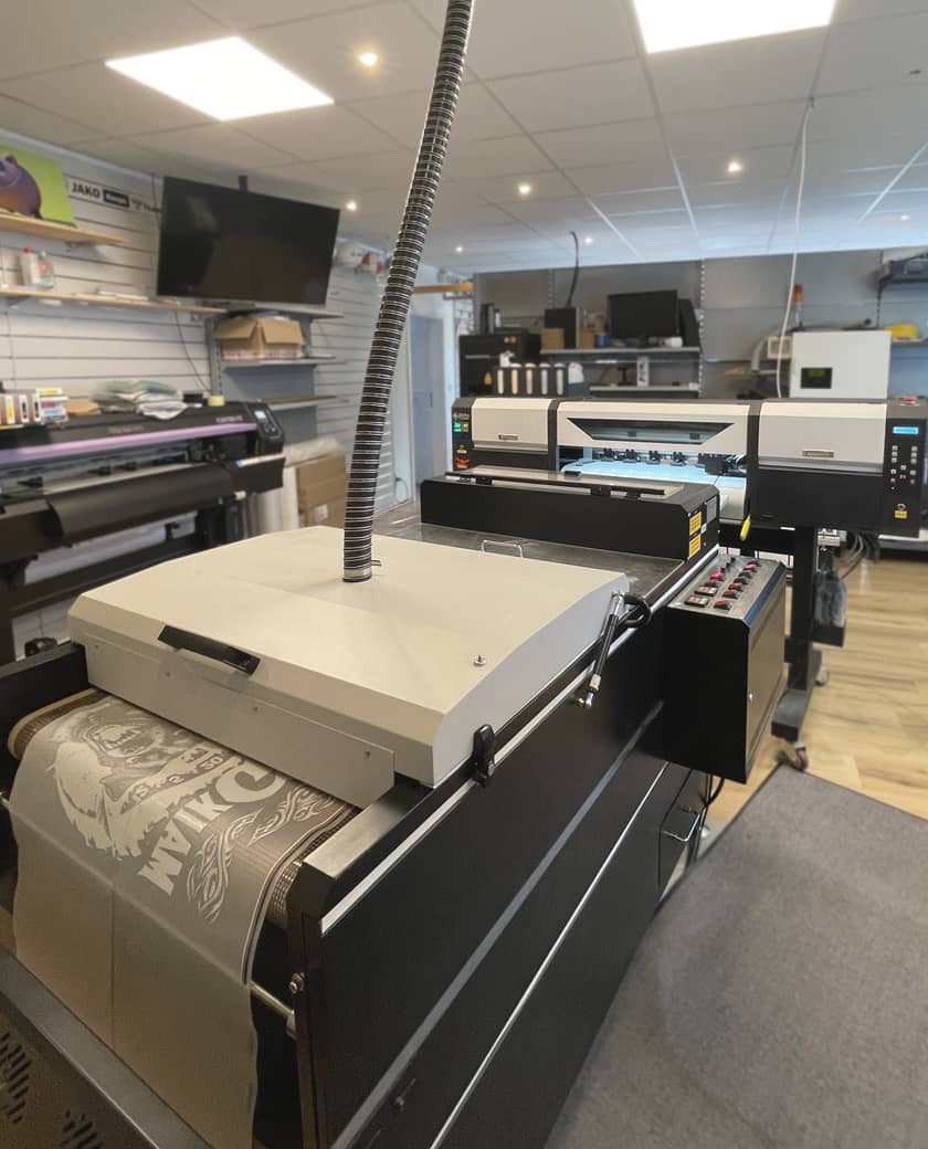 DTF‑Druck ist eine moderne Technik: Das Motiv wird zuerst auf eine Folie gedruckt und anschließend präzise auf das Produkt übertragen.